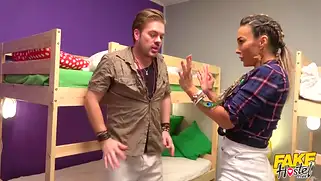 - Путешественник снимает номер в отеле дешевом, где собирается остановиться на одну ночь. Там уже была телочка, кто обратила внимание на ноги мужика. Он не носил обуви и вообще выглядел как челик с канала о природе. Бабень попросила сыграть на гитаре и красавчик набрякал незатейливую мелодию. Затем улегся на пол спать, а сучка заметила, что чувак пялился на титьки и начала кричать. В ходе криков и оров брюнетка бросается на самца и раздевает, доставая из трусов пенис. Отсасывает его теплым ротиком, а затем соблазняет парня для дальнейшего горячего и страстного трахадрома. Он не выдержал и кончил в пиздень семенем.