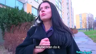 - Русская телка соглашается на секс за деньги с мужиком из Чешской республики, остановившего её на улице. Он начал расспрашивать о жизни и узнал, что милашка брюнетка учиться на медсестру и приехала из Москвы. Чувак сделал ей парочку комплиментов и предложил сняться для кастинга. У неё может быть большое модельное будущее, поэтому нужно заценить фигуру. Деваха согласилась и привела челика домой, где раздевается медленное и демонстрирует титьки небольшие и стройное телосложение. Николь взяла бабки и затем отсасывает пенис, готовясь к дальнейшей порнушке. Такой халявный заработок ей понравился.