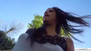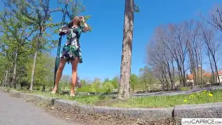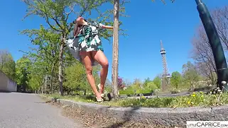 Little Caprice - Деваха из Чехии сегодня будет демонстрировать письку, голую попку и груди и не просто в соло видео на студии, а на свежем воздухе. На улице не так много народу, вот сучка с продюсером решают заснять эротический видос на фоне башни и городского парка. Куколка снимает трусики и бегает вокруг дерева без труселей и в легком, летнем платье. Она присаживается на корточки и даже писает на землю небольшое количество мочи. Всё происходящее документируется оператором, а затем пара отправляется в живописную локацию. Теперь это поле и сад с деревьями, где краля милая и красивая продолжает красоваться писей.