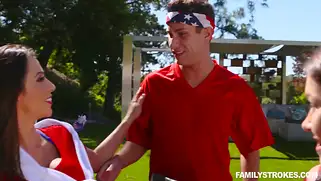 - Мамаша хочет страстного траха на совместной вечеринке на свежем воздухе и подбивает дочь 20-летнюю на порнушку с братом. Он пришел очень вовремя и получает от самочек не просто пошлые взгляды в собственную сторону, но и конкретные действия. Сучки под столом играются с яйцами и мясистой колбаской, погружая её в глубины ротика и принимаясь исполнять великолепное порно. Стартует по сути семейный секс и инцест, пока отец занят прожаркой мяска, чувак студент жарит двух озабоченных блядей, которые удовлетворяют его писюн нежными ротовыми полостями и качественно отсасывают хер, проводя по залупе кончиком язычка.