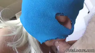 - Толстяк снимает на камеру любительский видос с девушкой, у которой на голове синяя маска с дырками для носа, глаз и рта. Он планирует с ней заснять порнушку и начинает латинская парочка с минета. Няшка раздевается догола после стриптиза и усаживается между ног жирдяя. Хватает маленький хуй и ласкает рабочим ротиком, погружая ствол в орал. После неспешного отсоса чувак ебет молодую деваху, пытаясь в разнообразных позах удовлетворить похабное желание секса. Завершающим шагом станет камшот на язык. Густая сперма обильными каплями падает на язычище, медленно стекая в горло, а студентка проглатывает семя.