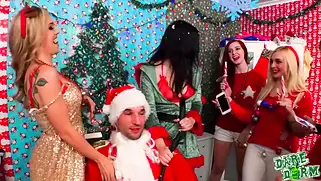 - Страстная секс вечеринка начинается с приглашения в гости парня для стриптиза. Он танцует перед красотками и собирается в наряде санты развлекать сучек, но бабы настолько пьяные, что сами принялись раздеваться и трясти задницами. Чувак просто уселся на стул и наслаждался представлением сексуальным. Одна из бабёнок вертит сракой прямо перед лицом, вставая на руки перед мужчиной. Далее последовал групповой отсос, ибо няшки захотели ебалова и минета. Несколько роликов разом облизывают и проглатывают внушительного размера половой орган. Чутка погодя каждая из присутствующих блядей оседлала кукан.