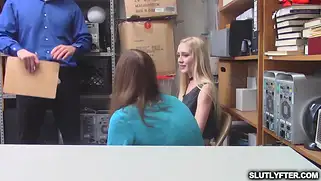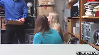 Порно видео Минет, Смотрят секс - Патлатый рокер попался в магазине за стыренные трусики, но взял их не он, а его дурочка подружка. Худенькая блондиночка с длинными волосами и ножками не устояла перед соблазном халявы и схватила труселя. На скрытой камере, установленной в зале с товаром все было заснято и владелец заведения привел виновников в кладовую, где пригрозил вызвать полицию, но затем придумал другой вид наказания. Он засунет хуй в письку и ротик студентке, а её кореш будет рядом находиться и смотреть трах помалкивая. Чел согласился, а бабе пришлось молча подчиниться, ведь проблемки куколке не нужны, да и предки будут ругать.