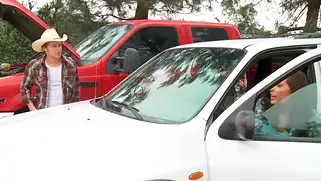 - Брюнетка старается помогать всем нуждающимся и подобрала на дороге ковбоя, у кого тачка сломалась. Чувака приютили в большом доме, а мужик самочки решил порадовать свою добродушную супругу особенным подарком. Он отвел её в гостиную и в прекрасную ночь начал трахаться с самочкой. Таким образом грудастая и жопастая с мужем ебется в дырочку после полученного от чела куни. Тип активно лизал вагинальное отверстие с небольшим количеством волос на лобке. Чикуля ловит кайф от блаженства и удовлетворяется за счет классного траха письки мокрой. Семя плескается ей на задницу после секса раком.