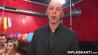 Порно видео В Сперме, в ночном клубе - В групповой оргии, что происходит в общей комнате клуба, будет жарко и горячо. Каждая из сучек не остаётся без внимания озабоченных самцов, что ласкают их интимные дырочки и доводя их до обильной течки. Кто-то лижет вагину, другие засовывают хуец в ротик, а остальные полноценно занимаются порнухой и проталкивают пенис в глубины вагалища. За всем наблюдает одетый мужик и две самочки, обнимающие его и в ожидании страстной ебли. Совместный трах станет причиной оргазма для участников ебалова. Похабщина оказалась игрой за приз и победителем становится тот, кто удовлетворил больше самочек.