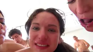 - Смелые девахи собрались на групповушку, где скоро наберётся куча дурачков для начала ебистики. Страстный секс толпой всех участников доводит до громких стонов и блаженных оргазмов, а голенькие самочки во всю глотку орут от кайфа. Кто-то для разнообразия хочет устроить двойное проникновение, а другие просто плескают много спермы, выплескивая её наружу из полового органа. Набухшие залупы проникают в горло и интимные дырочки каждой из бабёнок, а огромная комната наполнилась вздохами и охами сексуального наслаждения от такой разнообразной порнушки массовой. Море семени выливается на телок.
