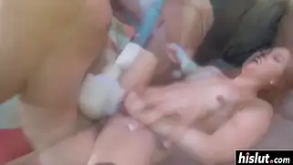 - Две самочки с длинными ножками и в чулках возбуждают парня, с которым собираются заняться порнушкой групповой. У него маленький член, но большой опыт в порнушке. Это заметно по реакции самок с бритыми письками, когда они начинают плескать сквиртом от кайфа. Одна из блядей хватает вибратор для мастурбации дырочки и помогает с возбуждением приятельнице. Та громко застонала и закричала, извиваясь от приятностей. Краля ловит экстаз несколько раз, пока чел готовиться извергнуть много спермы. Бабища ахает и охает, наблюдая за фонтаном мужского оргазма, вылетающего из залупы набухшей от блаженства.