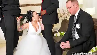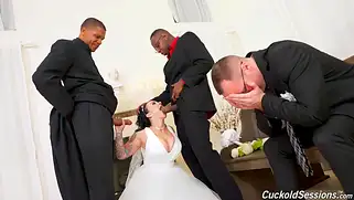 Payton Preslee - Белый тип проводит церемонию обручения с будущей супругой, а татуированная и наглая сука начинает приказывать муженьку. Требует встать на колени и наблюдать за тем, как она ебется с чёрными мужланами. Хлюпику лучше запомнить, как нужно качественно ебать ненасытную дырку сучки, дабы удовлетворить щель. Африканские челы с длинными хуями основательно поимели влагалище суки с пышными титьками и плескают много густой спермы наружу, заливая сисяндры самки семенем. А мужик слизывает эякулят чужой с буферов, куда и исполнили камшот из продолговатых членов. Довольная брюнетка рада получившейся порнухе.