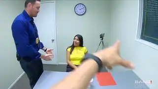 Violet Myers - Грудастую девушку допрашивают в специальном кабинете, где ей будут раздвигать булочки в поисках нежелательных предметов. В друг самочка протащила между булок белый порошок. Один из представителей порядка после досмотра достаёт длинный и большой член, чтобы засунуть его между ног куколке, что становится началом страстной порнушки, неподобающей для полицейского или детектива, но подобный способ прекрасно работает с хулиганками. После значительной порции траха случается признание и бабёнки рассказывают всё о нужном человеке или событии. Видео с латинкой кончилось спермой на языке.