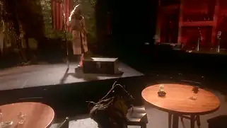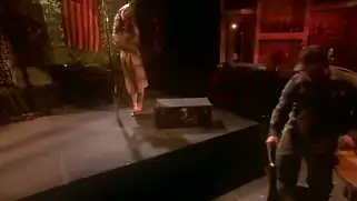 Стриптизерша в ажурных чулках сосет член и трахается на сцене
