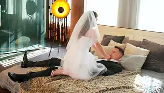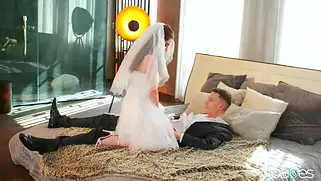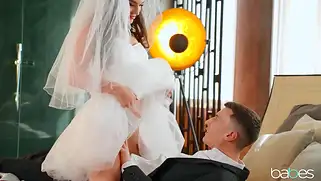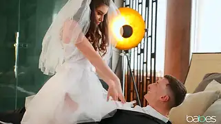 Stefany Kyler - Сексапильная красотка в пышном платье раза, что выходит замуж и решает отпраздновать замечательное событие сексом с любимым. Молодая невеста не надела трусики и позволяет чуваку полизать собственную дырочку, когда тот залез под подол и принялся активно вылизывать интимное отверстие. Тянка ловит блаженство от приятных ощущений, что приводит не просто к возбуждению, а желанию поделиться любовью. Шустрый ротик куколки начал умело и страстно лизать пенис партнера. Залупа набухает и становится твёрдой от качественного минетика в исполнении брюнетки. Чел стонет в ходе оральных пошлостей.
