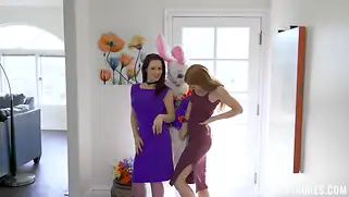 Jessica Ryan - Высокая брюнетка подбила подружку на групповой секс с чуваком в мохнатом костюме на пасху. Рыженькая сучка соглашается и вот студент уже активно трахается с красивой рыжей самкой, не подозревающей, что в глубине её вагинального отверстия двигается братский пенис. Хитрец не стал раскрывать собственную личность до самого конца, стараясь насладиться мокрой писькой сестры. Сестринская дырочка обильно течет от кайфа, пока внутри шевелится крепкий и внушительный ботл бро. Чел с довольным выражением лица проникает в промокшую щель, доводя себя и партнера до сексуального удовлетворения, близкого к оргазму.