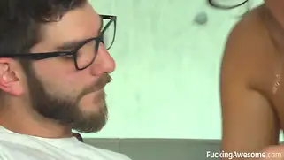 August Ames - Озабоченный очкарик пялиться на титьки сеструхи, а она и не против поебаться с бро, ведь у его девушки совсем маленькие груди. Чикуля решает трахаться с братом, дабы продемонстрировать, что бывают телочки с очень классными буферами и не нужно зацикливаться на одной даме сердца. Сука стягивает с родственника штаны и начинает активно отсасывать писюн, наслаждаясь оральным сексом. Она шустро двигает ротиком по стволу и яйцам, побуждая челика ахать и охать от кайфа. Далее у парочки следует инцест трах уже во влагалище и мокрая писька принимает внутрь тёплый и здоровый половой орган. Именно он плескает семя в орал шалашовке.
