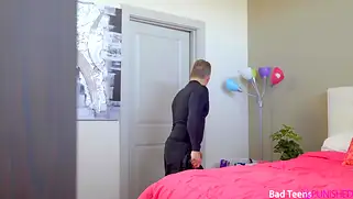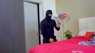 Marcus London - Мужчина находит в телефоне своей падчерицы странную переписку с бойфрендом, которого она просит устроить ей жесткое БДСМ. Даже прислал сучке видео в маске, где типок трахает грубо какую-то бабу. Глава семейства решает проучить глупую дырочку и устраивает ей секс засаду, притворяясь негодяем. Мужлан напялил на себя балаклаву и подкараулил студентку, пока та разденется и захочет спать. Набросившись на суку, тип пихает большой пенис в глубны влагалища и доводит до стонов тянку обнаженную. Так продолжается длительное время до самого оргазма и заполнения письки слизкой спермой. Пиздень словила кремпай.