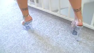 31K Порно видео Мастурбация, - Брюнетка схватилась рукой за перила и засунула в киску дилдо