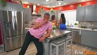 - Сексуальные красавицы привлекали папашу давно, однако нравственные установки в голове перевешивали похоть. Пока не случилось обратное. Титькастые шоколадные бестии соблазнили батю на инцест на кухне. Нахальные членососочки дорожат вниманием заведенного ебыря, так что сделали интимные стрижки и прикрасовались. Двойной минет на коленях - то, о чем и мечтать не мог взбалмошный трахальщик. Далее все развивалось стремительно. Телочки очутились сверху на похотливом сникерсе, и уголек по очереди оприходовал дырочки фривольных давалок, которым без сомнения происходящее пришлось по душе.
