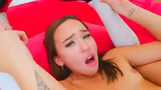 Jules Jordan - 20-летняя порноактриса наконец добралась до знаменитых режиссеров. Студия славится качественным контентом, и главный босс выходит в кадр тольк тогда, когда телочка достойна внимания. Таковой и оказалась сучечка. Сам Джулс Джордан протестировал бритую пизду студентки. Заведенная краля моментально продемонстрировала на площадке скилл по части классного отсоса, и хитрожопый блядун набросился со своим исполинским стволищем на мокрую киску тихони. И скромницы родилась настоящая бестия траходрома. Красоточка покладисто исполняла все, что только желал бойкий плейбой, чем заработала баллов.
