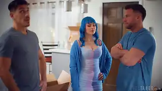 Jewelz Blu - Горячая 20-летняя чика вместе с новоявленным супругом приехала заселяться в только что купленный дом. Казалось бы, семейная идиллия, однако знакомство с мужиком, проживающим напротив все разрушило. Молодая девушка изменила мужу с соседом. Яркая карамелька заигрывала глазками с темпераментным соседушкой, и вот уже парочка уединилась и пиздолиз мутит нереально приятный куннилингус для уверенной давалки. Тем временем куколд муж ждет на улице и начинает беспокоится. Быстрый перепих продолжается, и любовник уже насовывает толстый хуй в узкую мокрую пилотку нескромной шалуньи.
