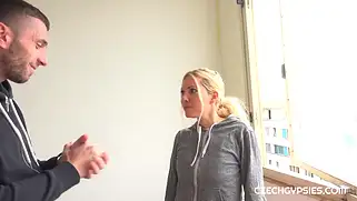 - 20-летняя студентка блондиночка просто прохаживалась по городу, когда к телке подкатил пикапер и предложил еблю за деньги. Конечно же, второкурсница согласилась, ведь бабки нужны были очень. Чешская давалка повелась на пикап и согласилась на трах в подъезде. Нескромная простушка по приходу на условное место сразу же показала пизду, и зажигательный хахаль расчехлил пинус и засунул в ротик стервочке. Членососочка оказалась со стажем, так что мило облизала любовный мускул пихаря, а затем встала в позу раком на четвереньки, кайфанула в догги стайл еще и толстую котлету кэша заполучила.