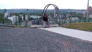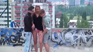 Красивую высокую телочку парни трахнули прямо в жилом микрорайоне
