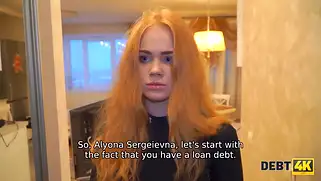 Cityporno - Девушка давненько просрочила свои платежи за взятые деньги, поэтому к ней присылают парня, который должен любым способом добиться выплат. Тёлочку в итоге ждёт секс за долги. Полностью ей не простят задолжности, но срок готовы отстрочить. Цыпочка рыжеволосая обладает великолепным телом, чем и пользуется в переговорах. Милашка с чувакам усаживаются на диване, где ебля сразу начинается с минета отличного. Сучке пихают писюн максимально глубоко, а потом краля начинает раздевается, показывая крутые сиськи с задницей. парочка смачных шлепков и вот куколку уже во всю трахают хорошенько.