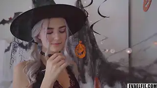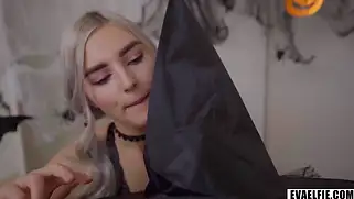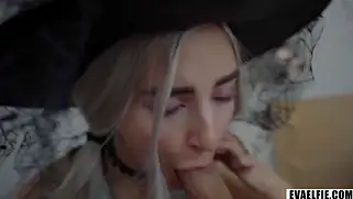 Eva Elfie - Крошка миленькая устраивает косплей для своего парня, переодеваясь в сексапильную ведьмочку. Русское видео начинается с демонстрации прелестей цыпочки. Под чёрным платьем будет находится совершенная попка, а топик будет скрывать классные сиськи, которые скоро будут оголятся, а шалунья приступит к минету. Только бойфренд вытаскивает елдак из штанов, краля в магической шляпе тут же становится на корточки, чтобы начать роскошный отсос. Сучка профессионально отсасывает писюн, а потом он окажется в её мокрой розовой дырочке, доставляя мощные оргазмы. Закончится любительский трах спермой в ротик куколке.