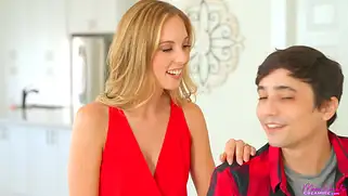 Секс подарок от похотливой мамаши в чулочках стеснительному сыну с недотрахом