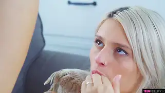 - Светловолосая кралечка пригласила домой паренька, пока предков не было, крутышка захотела аудиенции и поскорее пососать хуец ненаглядного любовника. Баловница с желанием приступила раздевать партнера, добралась до крепкого елдака и взяла в ротик. Осеменитель тут же почувствовал нежные прикосновения языка и губ, эклер налился возбуждением, и теперь трахаря было практически не остановить. Уложил на лопатки на спине стелечку и засадил хорошенько хуец в письку. Но в одной лишь позе миссионера было не по кайфу, и златовласка встала раком, чтобы продолжить уже в такой позиции заполучать яркое удовольствие.