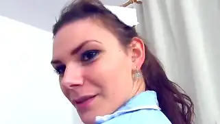 Горячая медсестра дрочит вагину, раздвигая ножки в кабинете