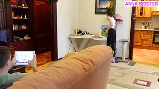 Anna Sibster - Славянская девица не может справится с домашними делами и её всё раздражает. Тогда типок решил успокоить бабёнку особенным образом. Он решает, что кремпай русской дырочки обязательно утихомирит деваху, а она словит кайф от полноценного секса с бро. Бабища забыла о невзгодах и позволяет нахалу себя поиметь в дырку, когда тот притопал к красотке в спальню. Немного шокированная сестра не сразу поняла намерения брательника, но он стал тискать тянку за письку, после чего у них и случается топовый ебатрон. Нежная щель секси няшки растягивается от полового органа с гладкой залупой на конце. Конча медленно вытекает из писи.