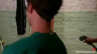 Bruce Venture - Стройная шоколадка поведала в интервью перед съемками, что желает хардкорной ебли. Ну сказано - сделано. Связанную худышку негритянку жестко ебут толпой. Телочка постанывает от наслаждения еще на этапе минета, когда облизывает каждый попавший на глаза елдак окружающих ебырей. Между тем, трахальщики возбуждаются с каждым движением волшебного ротика и вскоре не смогут контролировать. Ремни и веревки надежно обездвижили партнершу, и напарники приступают присовывать половые органы в очко, пиздушку и снова ротан. Негритяночка страстно стонет, испытывая крайнюю степень удовлетворения от происходящего.