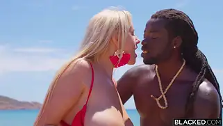 Angel Wicky - Грудастая красоточка загорала с мужем на курорте, но вдалеке появился черномазый красавчик, моментально привлекший взор крутышки. Сисястая леди поспешила уединиться с угольком. Негр красиво ебет блондинку на свежем воздухе. Деваха без зазрения совести взяла в ротик массивный эклер, ведь половой орган был гораздо больше супружеского. Сладенько облизав пенис, сучка повернулась и улеглась на животе, а сзади пристроился трахушник и принялся пороть златовласку на чем свет стоит. Стерва еще никогда так не стонала, ощущая глубокое проникновение писюна в мокрую от возбуждения пиздушку.