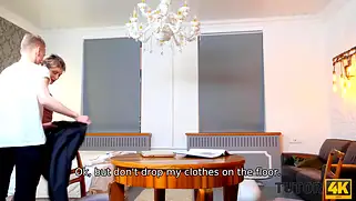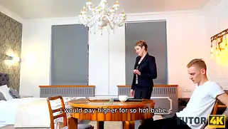 Martin Spell - Чтобы поднять просмотров, блогер снимает необычный контент для канала. Чел прикинулся студентом, нанял репетиторшу, после чего жестко трахнул зрелую тёлочку. Блондинка в строгом костюме не подозревает что будет принимать участие в таком. Сперва всё проходит довольно обычным путём, но постепенно чувак будет делать комплименты дамочке и отвешивать различные пошлые шуточки. Милфа на удивление заводится от подобного, ибо на данный момент находится в одиночном положении и не имеет супруга. Краля не выдерживает повышенное внимание от молодого красавчика и быстро раздвигает ножки для траха.