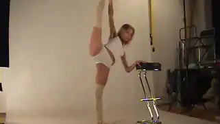44K Порно видео Молодые, без трусика - Гимнастка в белых трусиках садится на шпагат и позирует в гольфах