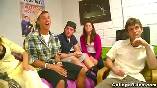 Парни прервали лесби шоу в общаге чтобы трахнуть симпатичных сучек