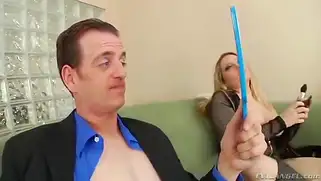 Блонда переодела парня в женское и поимела кулаком и страпоном
