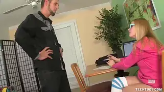 - Блондинка в смешных очках в два счета выдрочила сперму на грудь