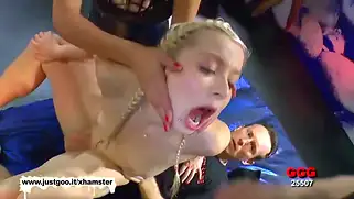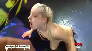 Блондинку с косичками ждёт групповой минет, а потом и ебля