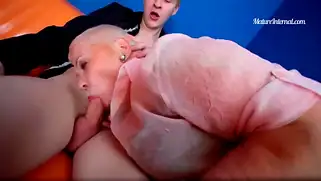 Жирной лысой бабе молодой самец кончил в пизду после траха