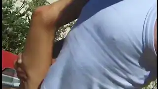Доярку выебали на тропинке и полизали её волосатую пизденочку