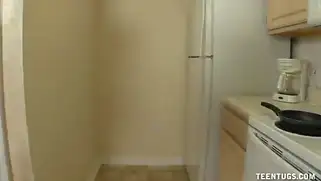 Когда муж захотел секса, белокурая жена подрочила хуй на кухне