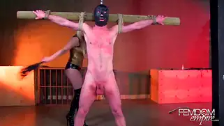 Доминирующая блондинка развлекается с членом привязанного парня