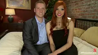 Телочка с большим членом решила трахнуть мужика в рот и попку