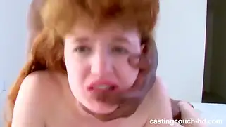 На кастинге кудрявую бабу заставили раздеться и сосать черный хуй