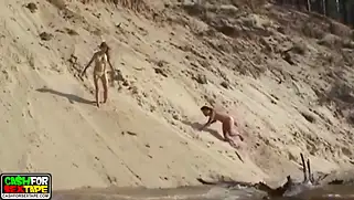 Сексуальные приключения русских нудистов с трахом на берегу моря