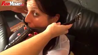 Грязная потаскушка с БДСМ наклонностями с кляпом во рту хочет трахаться ночью