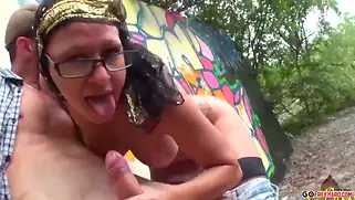 Секс на улице со зрелой бабой с анальным проникновением в нее
