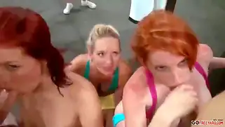 В спорт зале группа парней и горячих сук устроили групповой трах