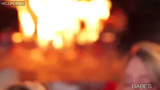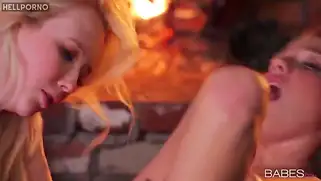 Сексапильные шлюшки лижуться на фоне горящего камина и стонут