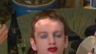 Две телочки нарядили мужика бабой и трахнули в жопу страпоном